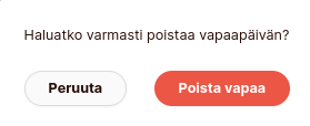 Mikäli yksittäisen vapaan poistaminen on mahdollista, näkyy oikean reunan toiminnoissa poistopainike. Mikäli poistaminen on estetty, näytetään kyseinen painike himmennettynä.