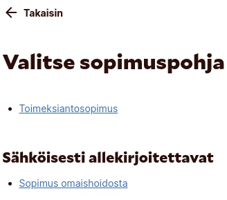 Mikäli käytössä olisi yksi tai useampia räätälöityjä pohjia peruspohjan lisäksi, pitää seuraavaksi valita haluttu sopimuspohja.