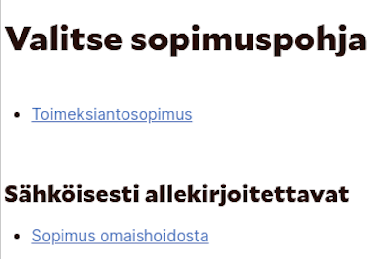 Alueiden sähköisesti allekirjoitettavat sopimuspohjat eroavat toisistaan, joten tässä ohjeessa käydään yleisellä tasolla läpi sähköisesti allekirjoitettavien sopimuspohjien toiminnallisuutta.