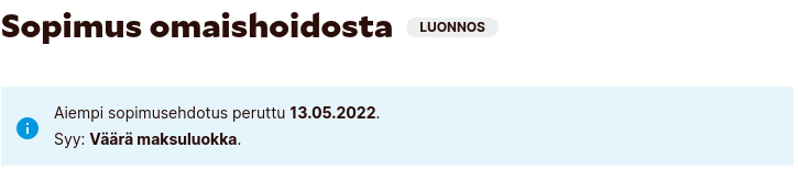 Hyvinvointialueen edustaja voi perua sopimuksen allekirjoittamisehdotuksen ja lisätä syyn allekirjoituksen hylkäämiselle. Myös hoitaja voi kieltäytyä sopimuksen allekirjoittamisesta. Hänen tulee lisätä syy, miksi hän ei sopimusta allekirjoita. Hylkäämisen syyt ovat nähtävillä sopimuksella.
