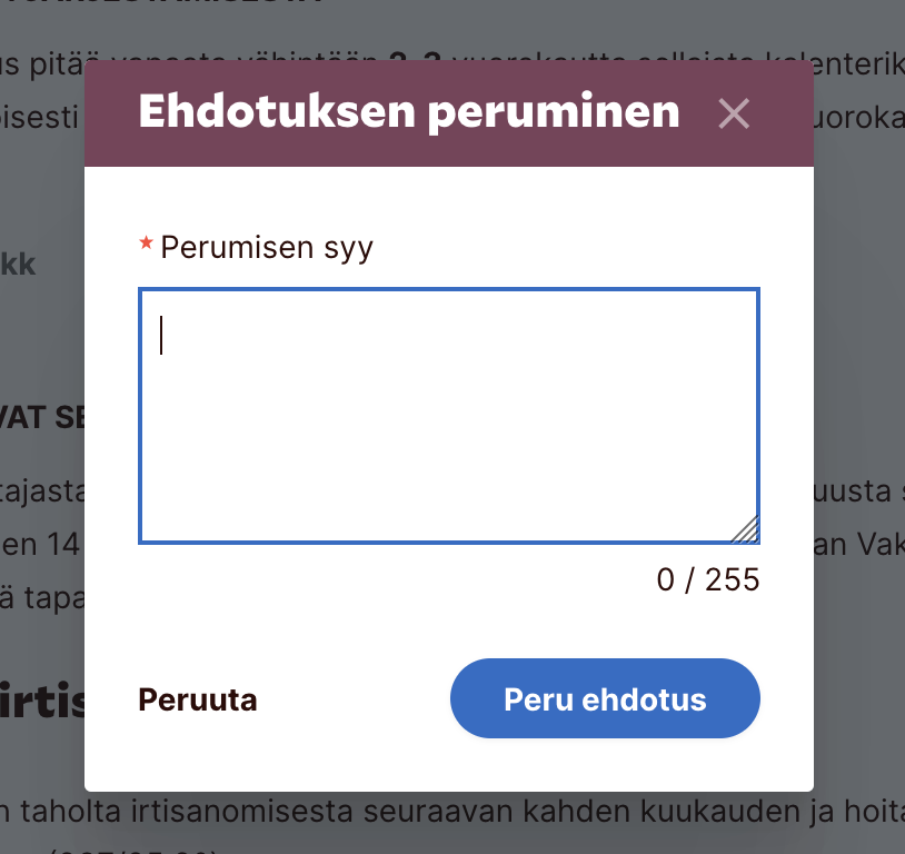 Sähköinen sopimus lähtee allekirjoituskierrokselle. Ennen molempien osapuolten allekirjoituksia, allekirjoitusehdotuksen voi vielä perua.