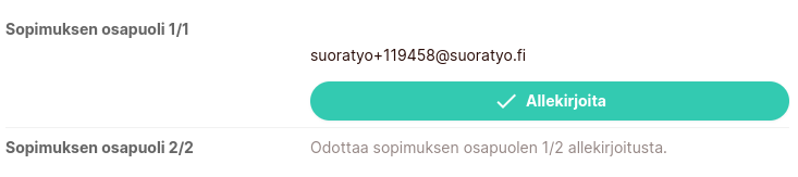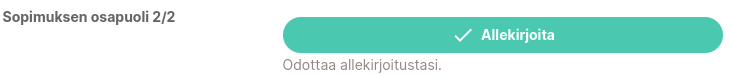 Jos allekirjoittaja on toinen henkilö, jää sopimus odottamaan hänen allekirjoitustaan. Henkilölle lähtee sähköpostia allekirjoituspyynnöstä.