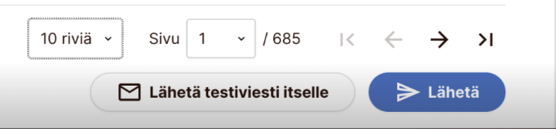 Kun on varmistettu, että kaikki on kunnossa, painetaan oikean alareunan "Lähetä" -painiketta. Tässä kohtaa voit lähettää myös testiviestin itsellesi. Testiviestin lähetys on ilmaista.
