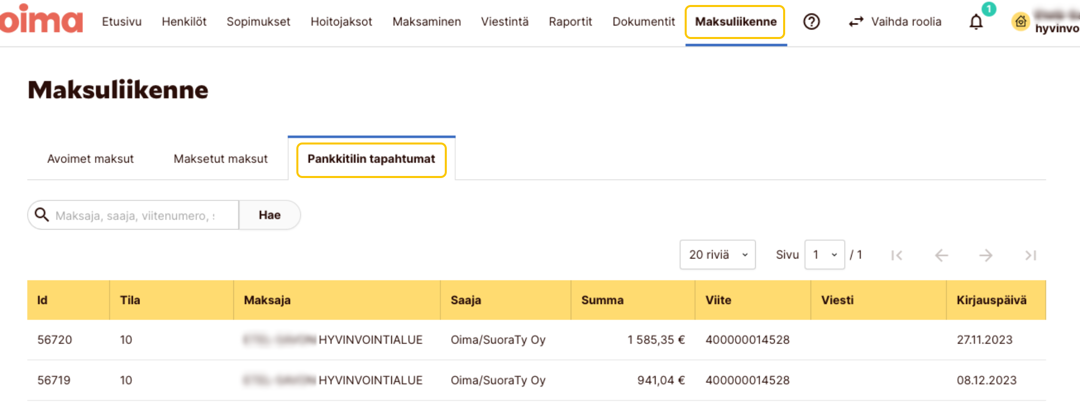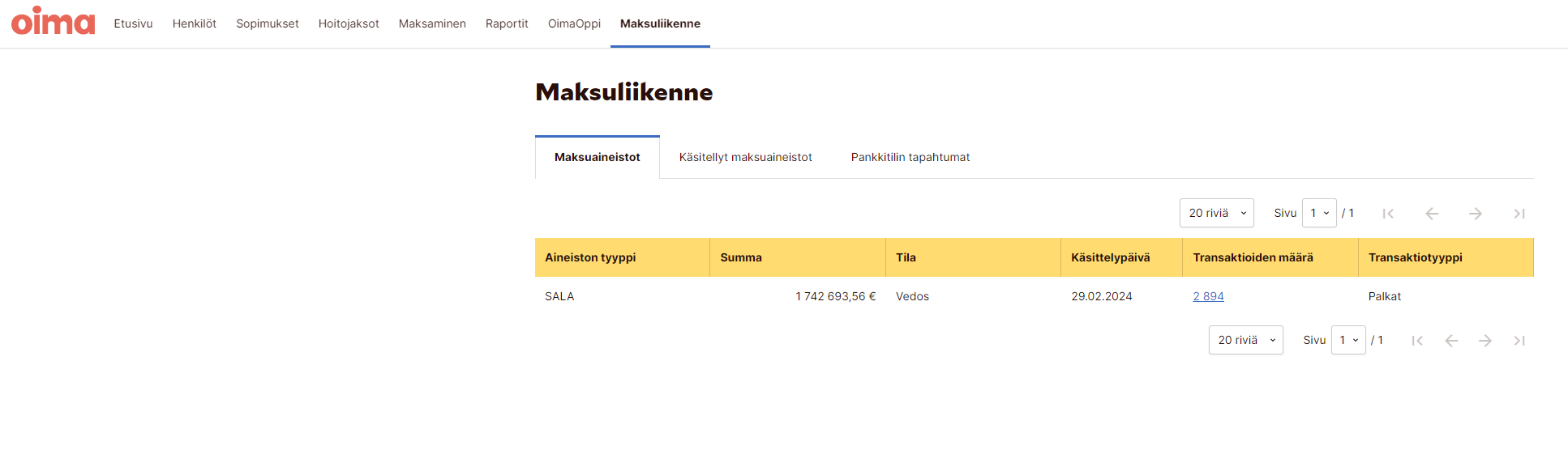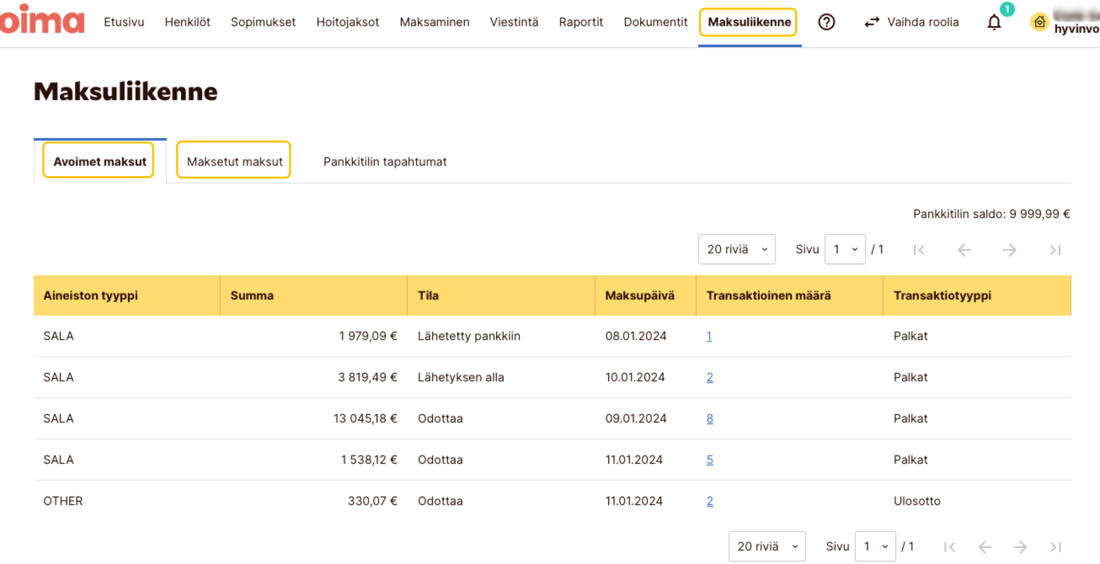 - Käyttäjä näkee Maksuliikenne- välilehden palvelussa