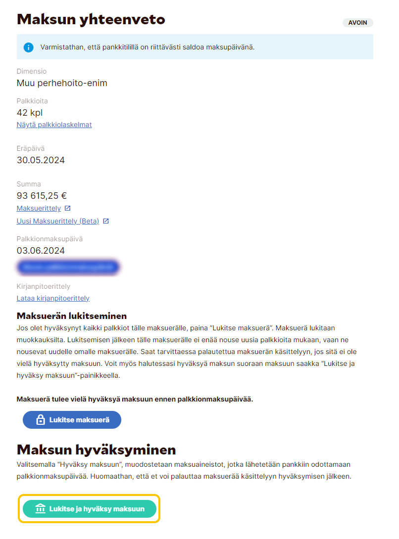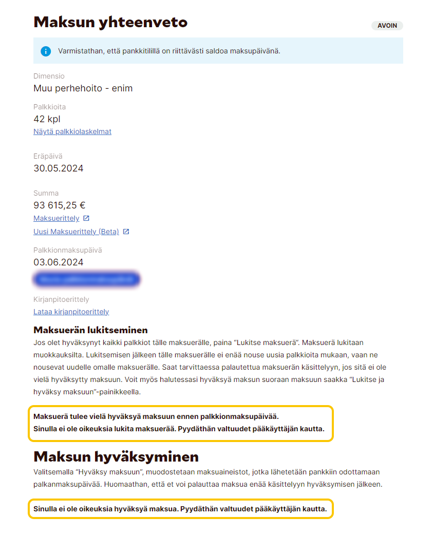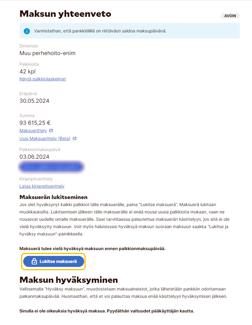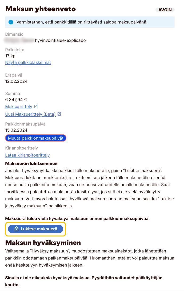 Oikeus lukita ja hyväksyä maksuerä maksuun:
