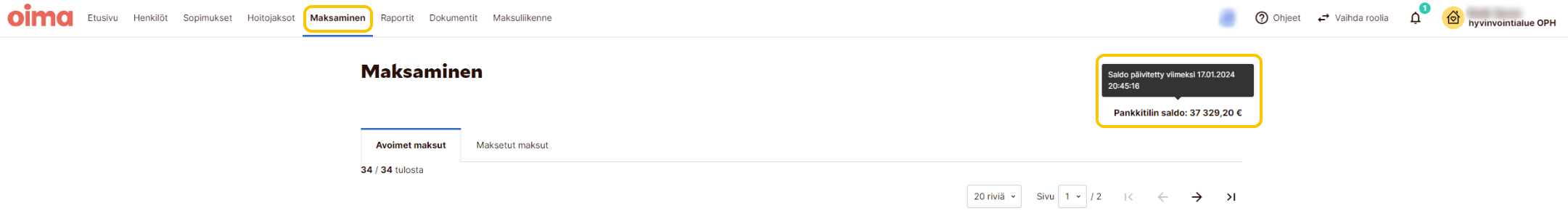 - Käyttäjä ei näe pankkitilin saldoa Maksaminen- välilehdellä