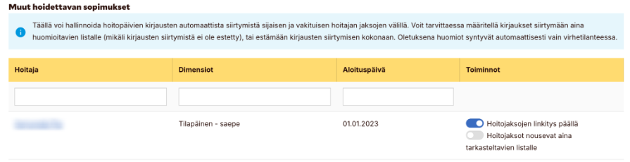 Linkitys tulee automaattisesti päälle, kun sijaisomaishoitajalle luodaan Oimassa sopimus sellaiselle hoidettavalle, jolla on samaan aikaan voimassa varsinaisen omaishoidon sopimus.