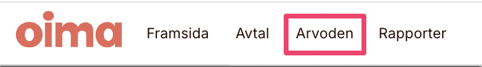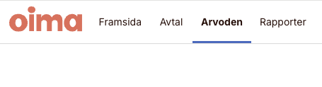När du har loggat in på Oima-tjänsten kan du granska uppdragsavtal och rapportera vårdardagar. Gå till vyn Avtal i tjänstens huvudmeny.