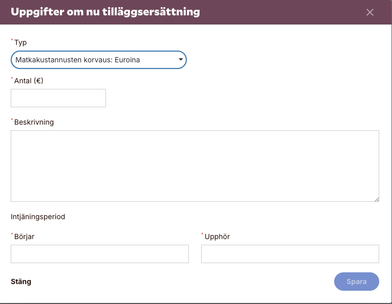 I vårdperiodens extra funktioner kan du rapportera separata ersättningar för resekostnader.