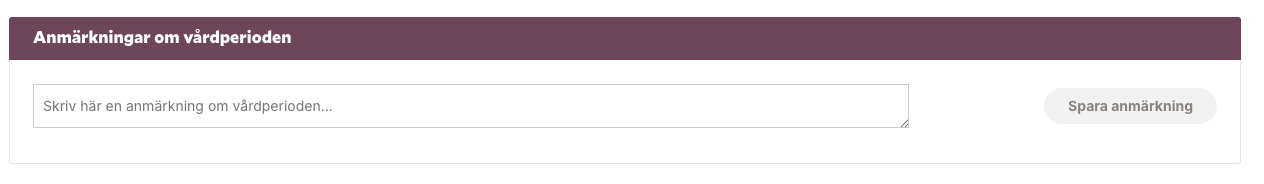I vårdperiodens anteckningar kan du skriva en kommentar relaterad till vårdperioden, som ersättningsutbetalaren bearbetar.
