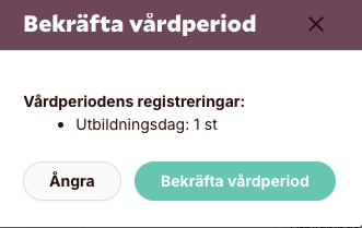 När rapporteringen av vårdperioden är klar, bekräfta vårdperioden.